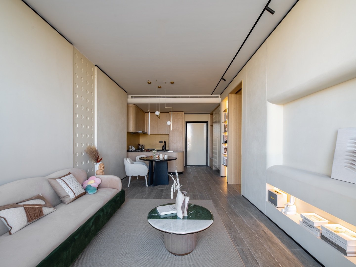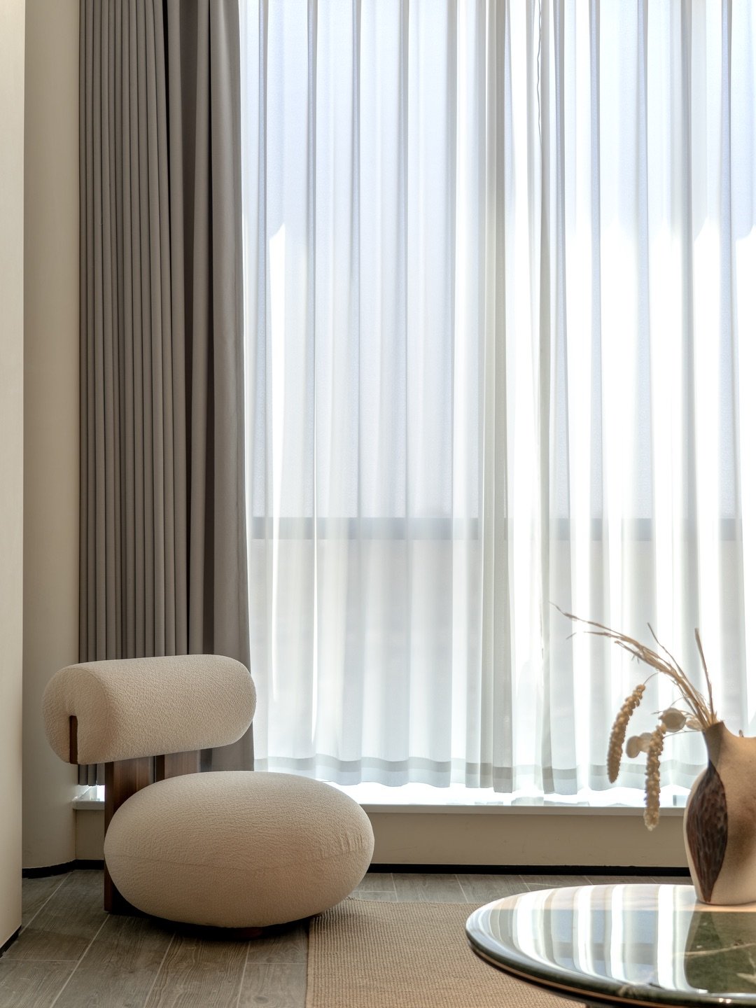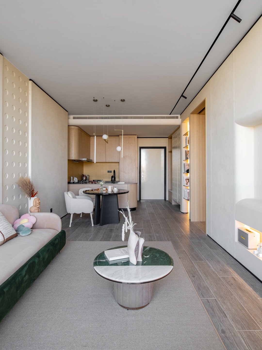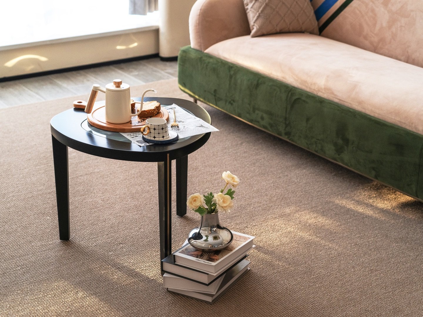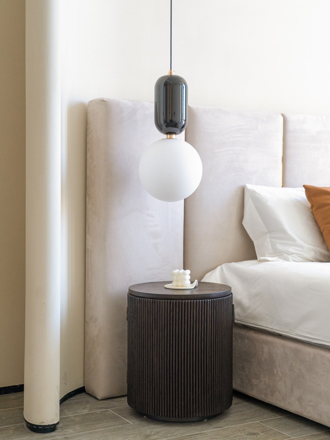 Doma Vibe is a living space, not bound by rigid rules. Here, you will see the circles stand out on colored walls, cream sofa, pink chalk unexpected combination with legs, moss green, or dining table side stones chic black is softened by the chair boucle fabric white.