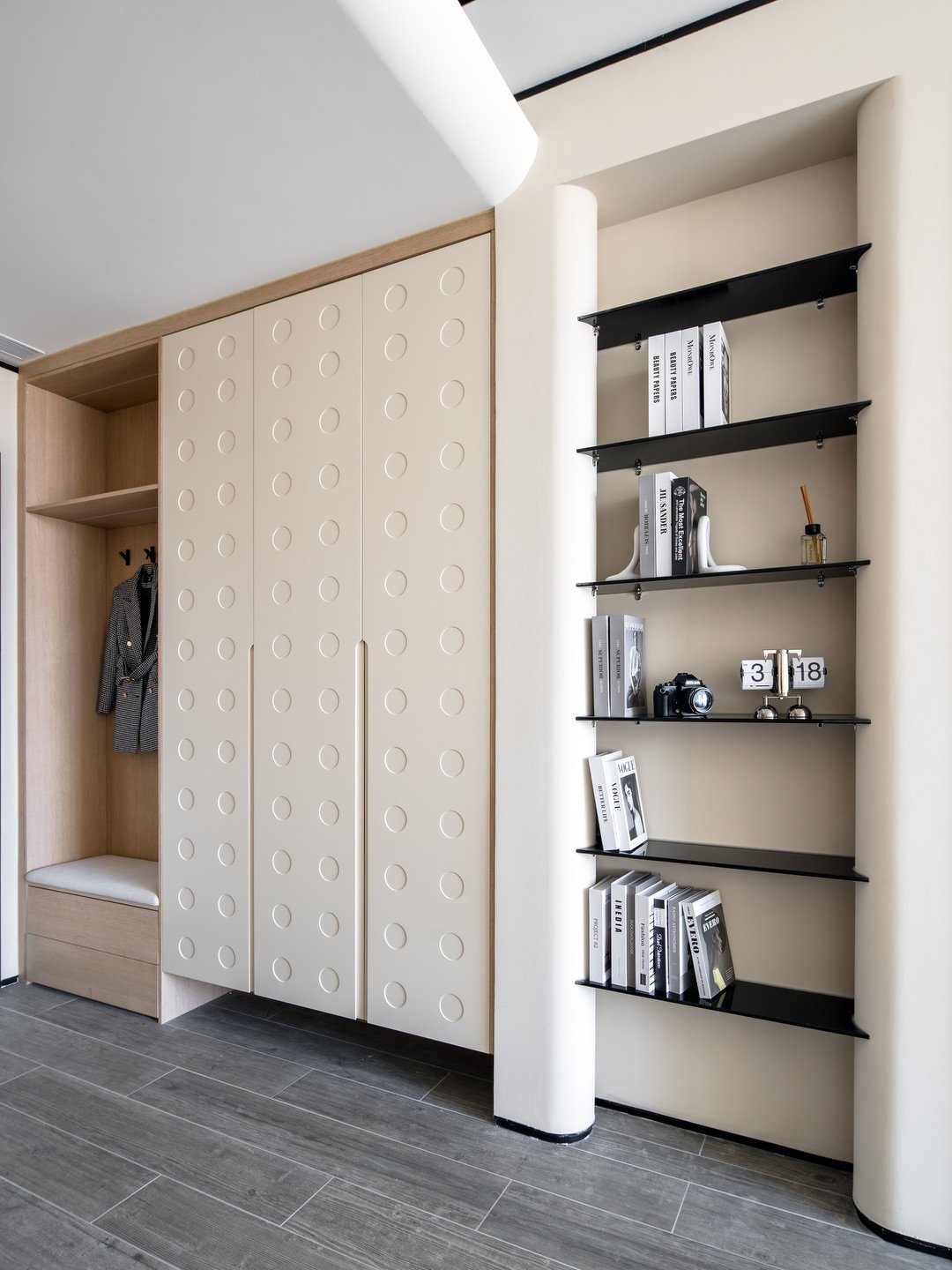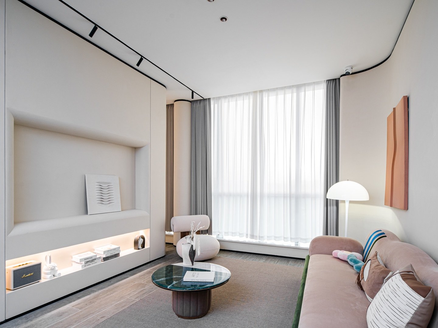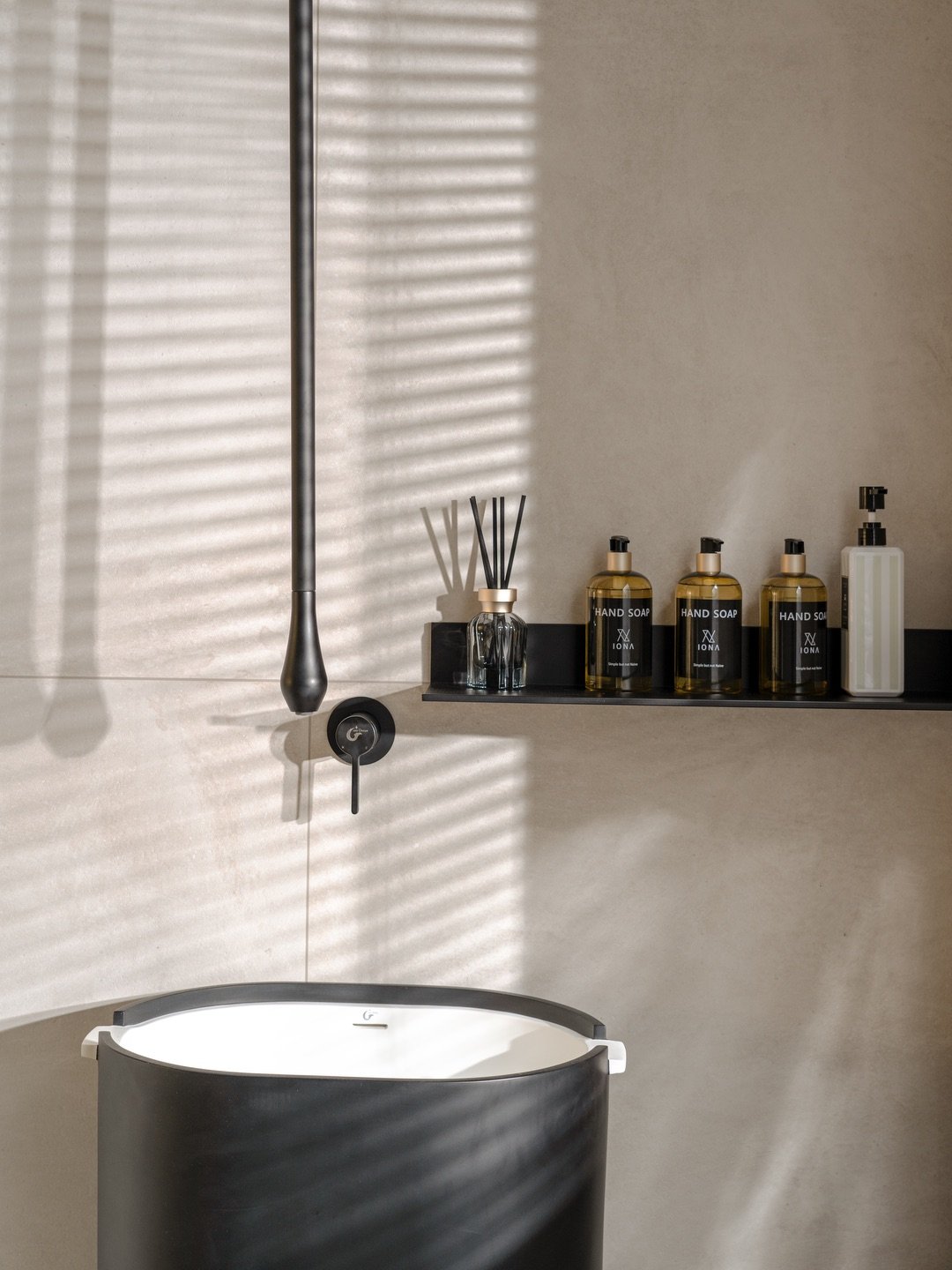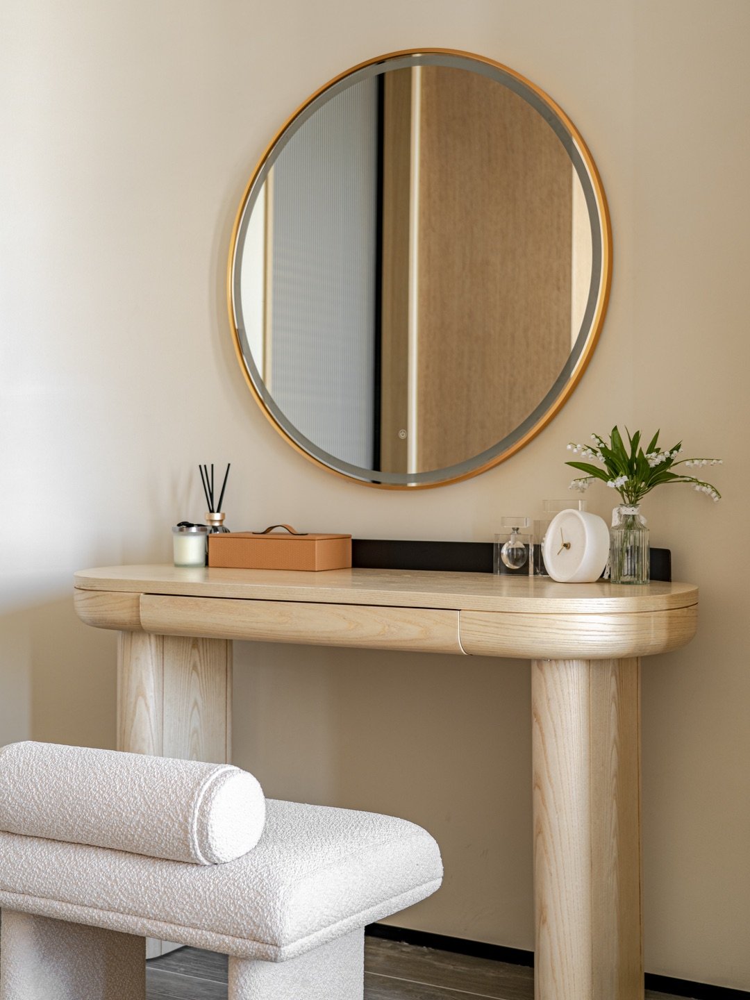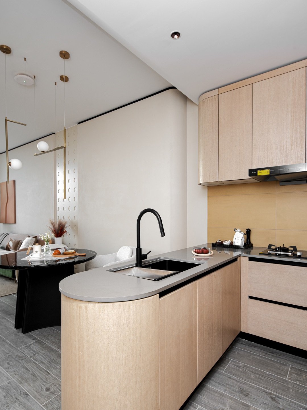 Doma Vibe is a living space, not bound by rigid rules. Here, you will see the circles stand out on colored walls, cream sofa, pink chalk unexpected combination with legs, moss green, or dining table side stones chic black is softened by the chair boucle fabric white.