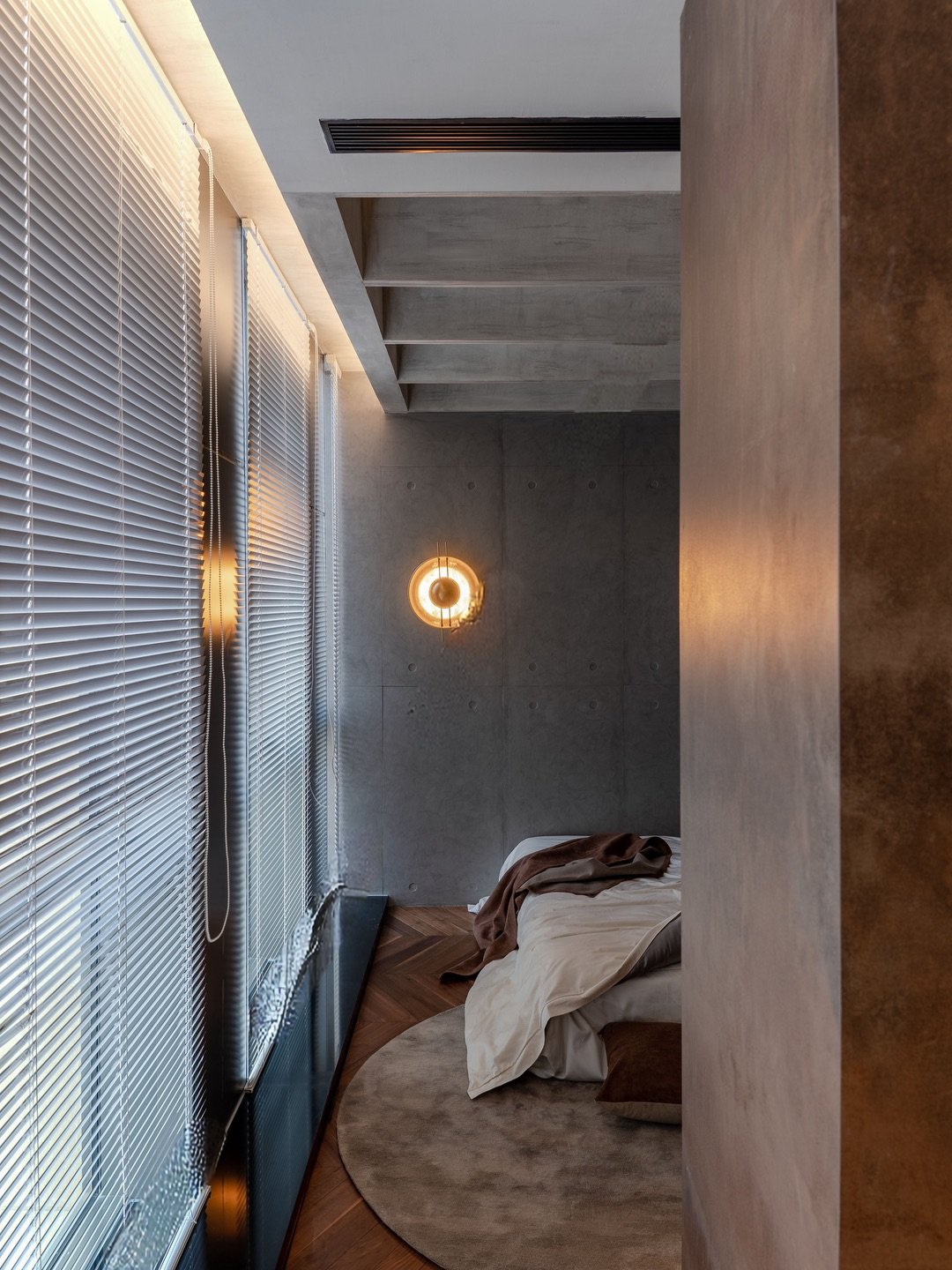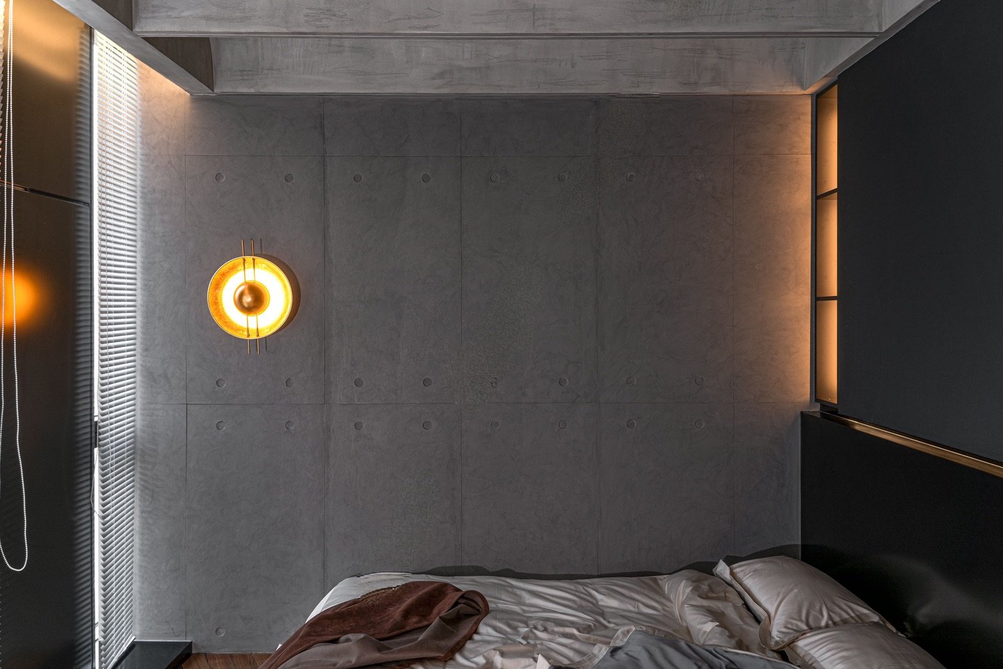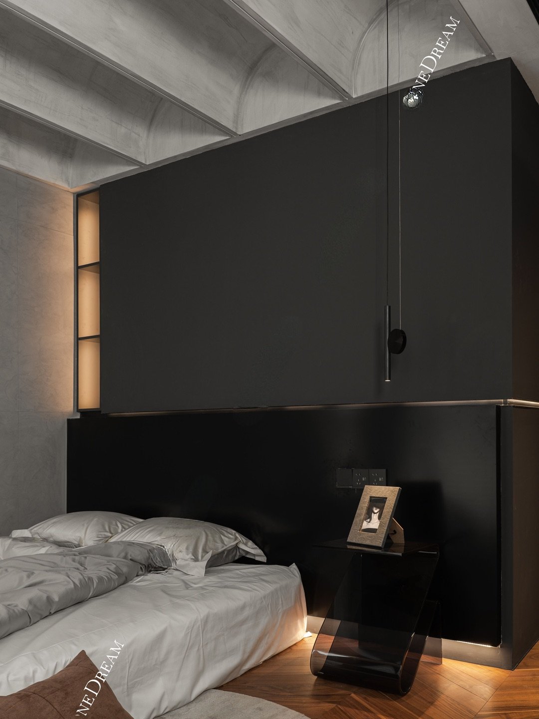 The light is not coming from the ceiling lights, flashy, that light scattered by slot, according to the contour – to the shadow also has role as light. Bedroom dark but not gloomy, that conjures a sense of privacy, safety, deeply.
