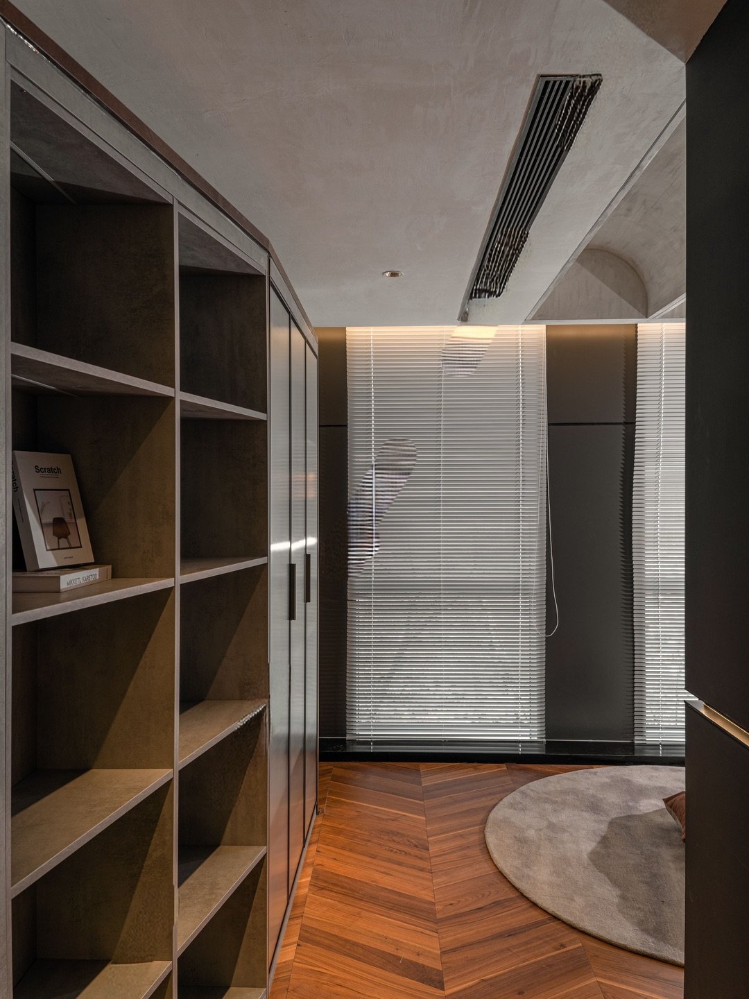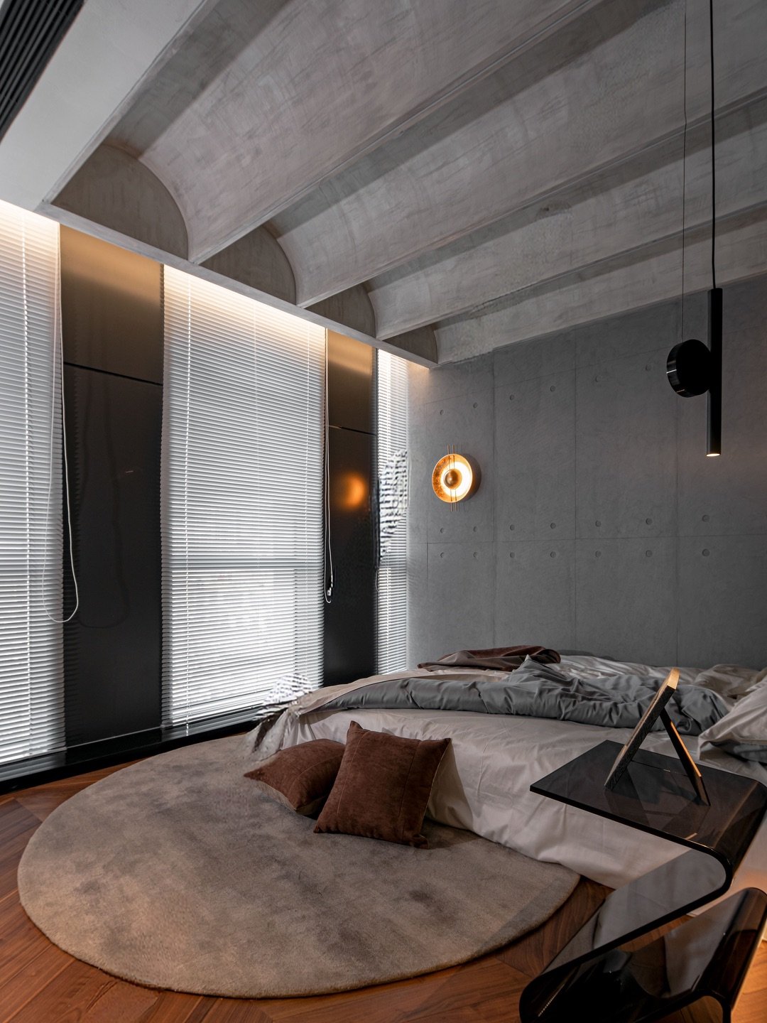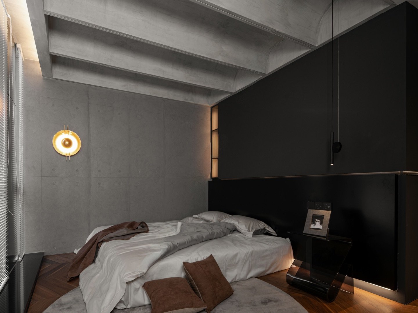 The light is not coming from the ceiling lights, flashy, that light scattered by slot, according to the contour – to the shadow also has role as light. Bedroom dark but not gloomy, that conjures a sense of privacy, safety, deeply.